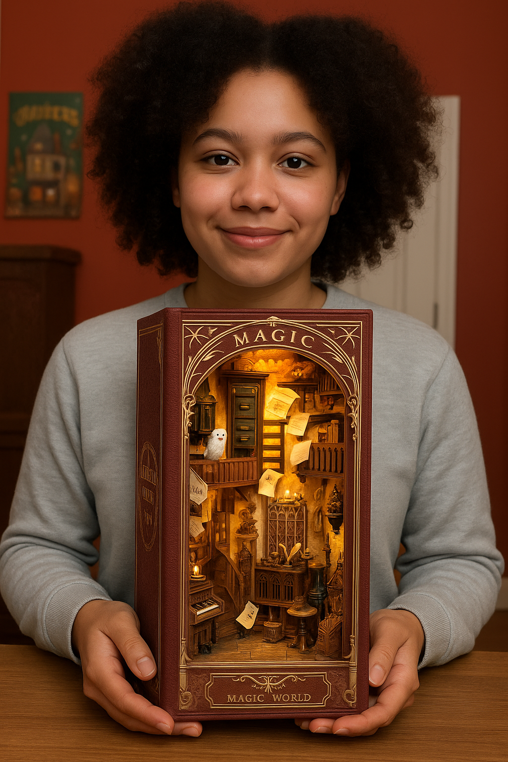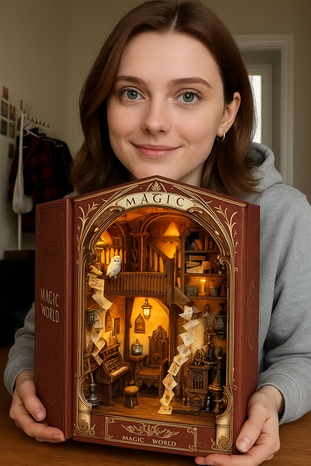 It is more than just a book nook. It is a doorway to a calm and beautiful world. With its detailed design, warm lights, and cozy feel, this DIY kit is perfect for book lovers and collectors.