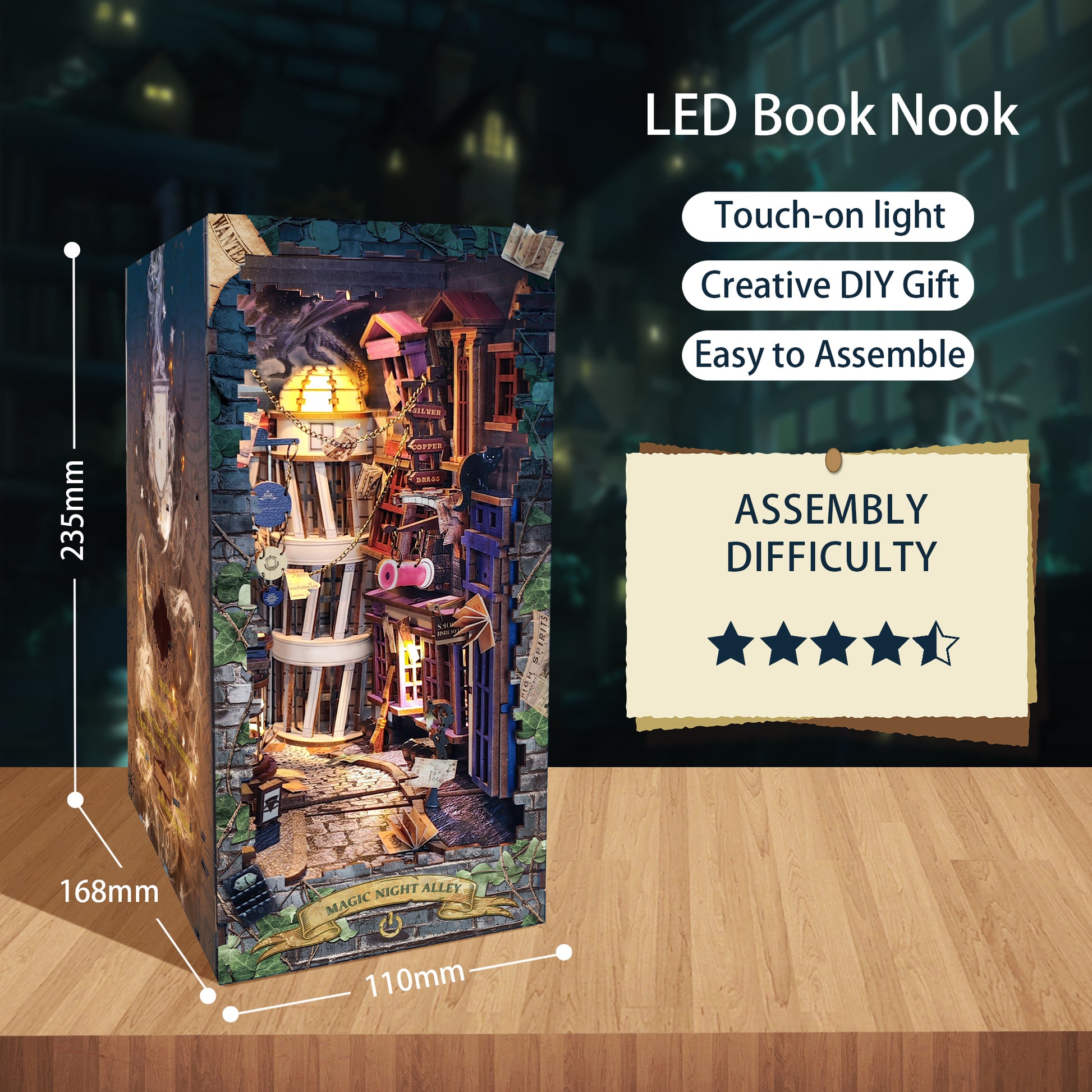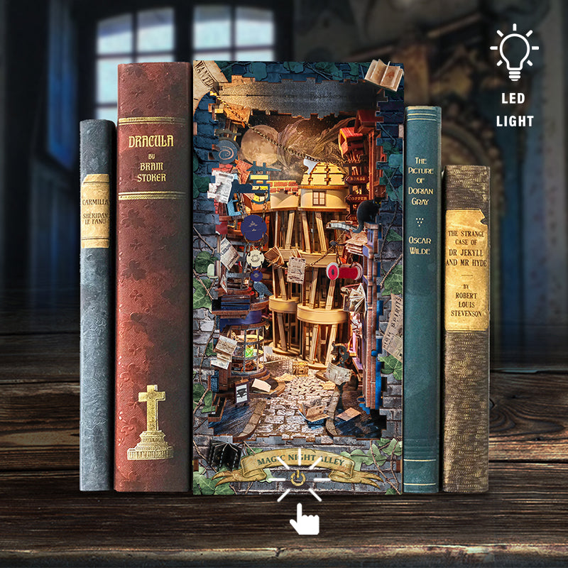 Step into the Magic Alley book nook and discover a cozy street filled with charming little shops. Every detail adds a touch of wonder, turning your bookshelf into a place of imagination and delight.