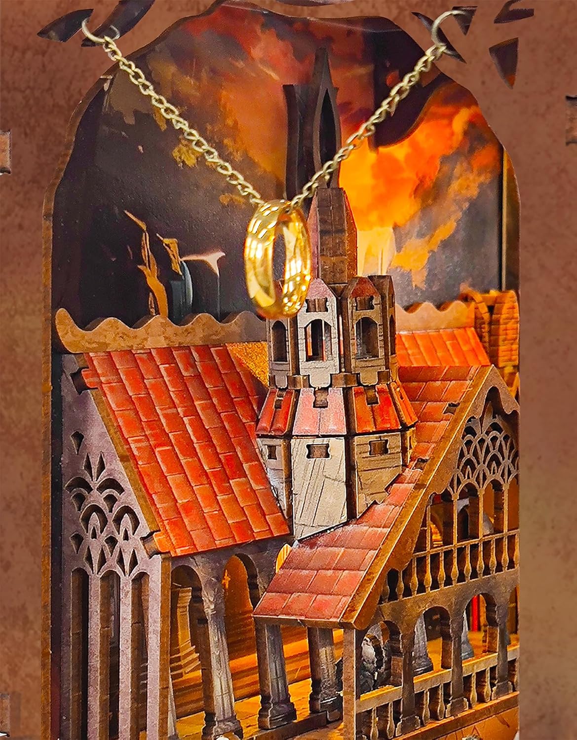 Inspired by The Lord of the Rings. Soft glowing light reveals every detail, from the fierce dragon guarding the realm to brave adventurers setting out on their journey. A beautiful tribute to a timeless story of courage and adventure.