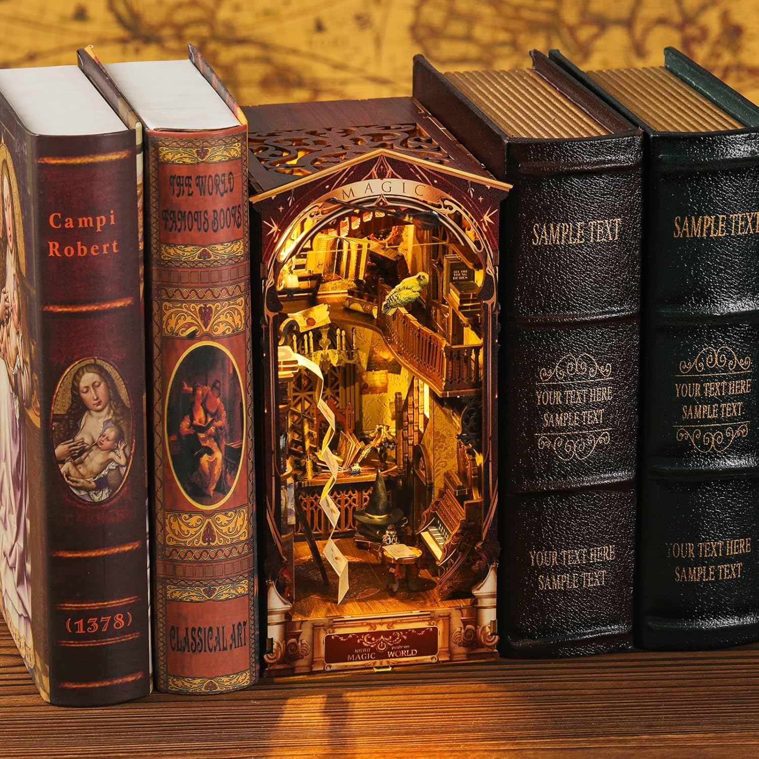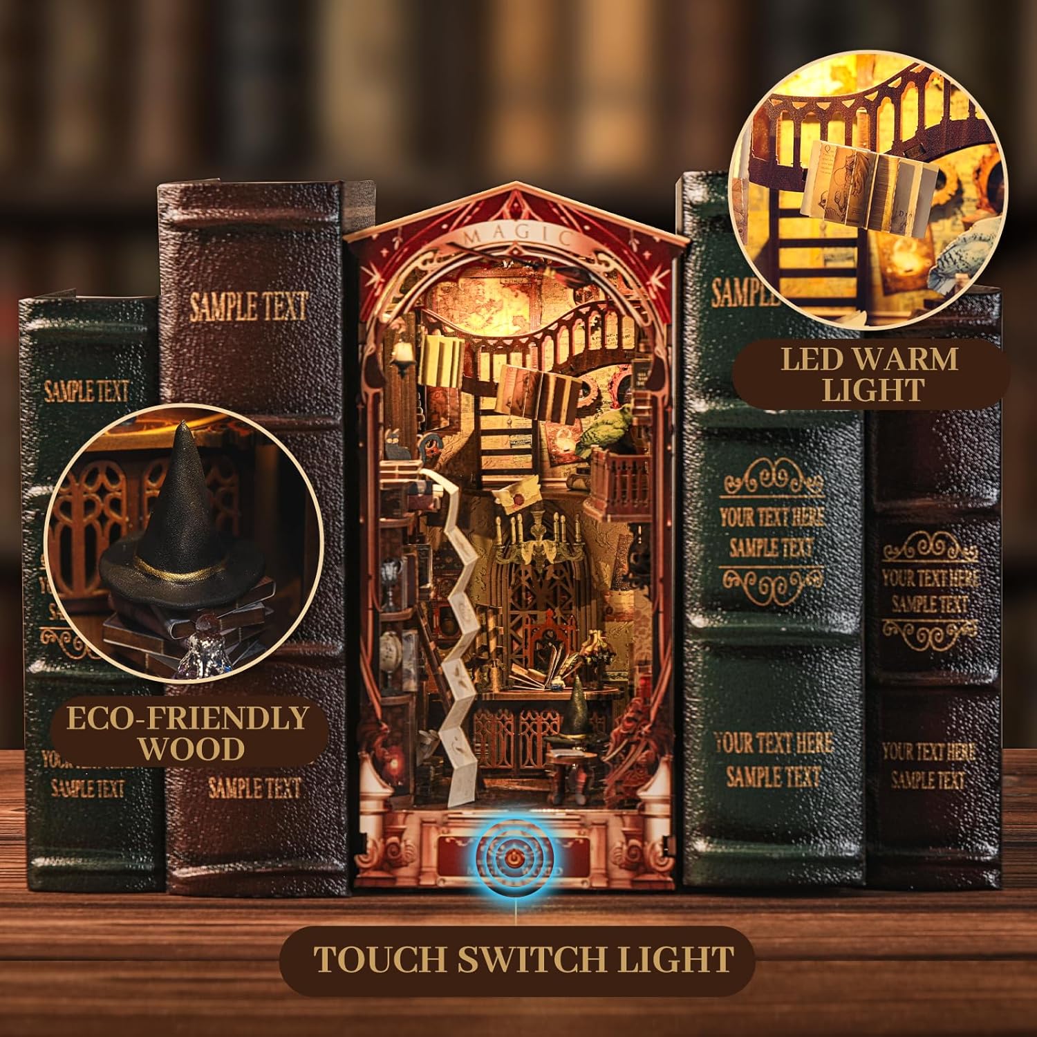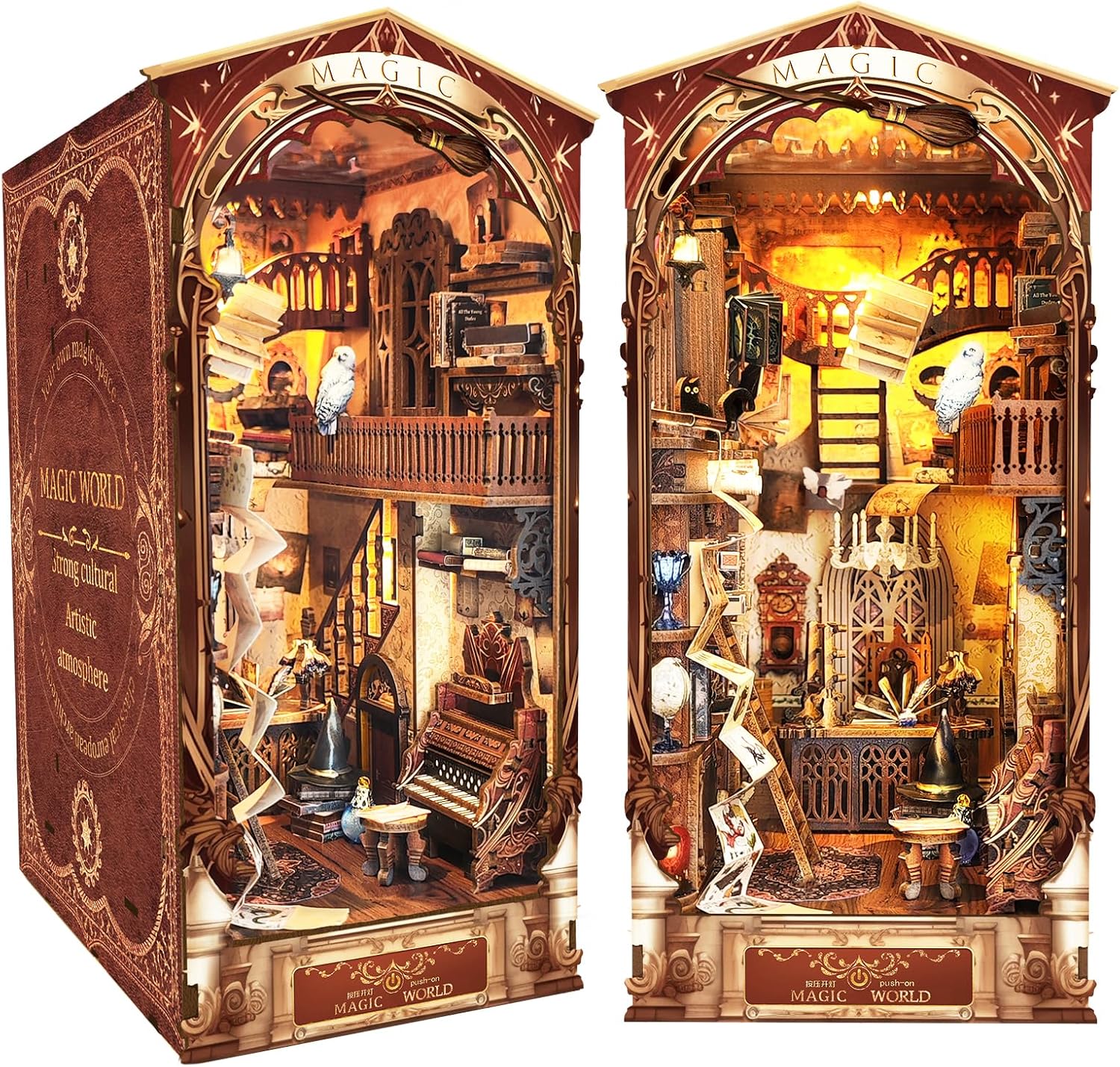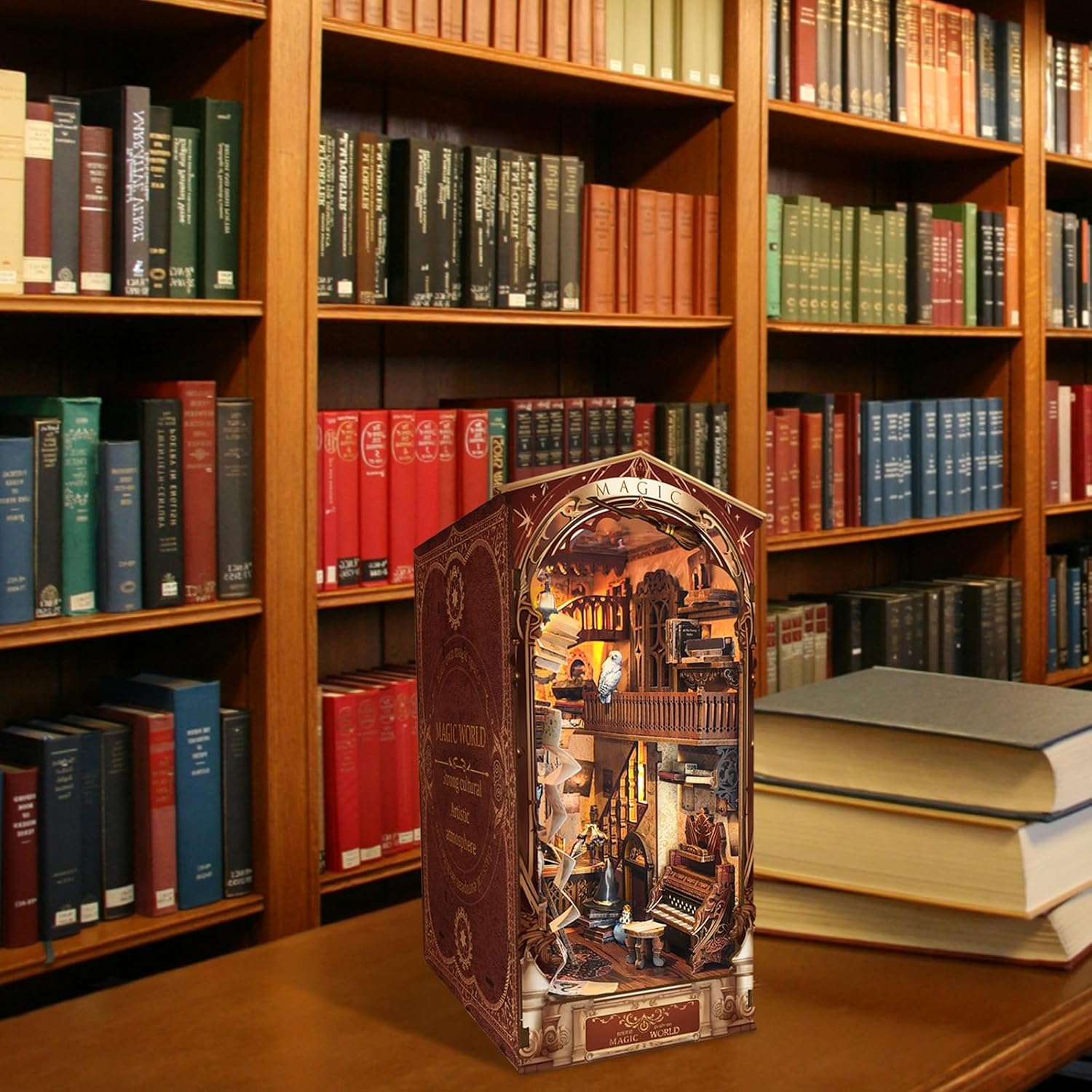 More than just a DIY project, this Book Nook is a beautiful decoration and collectible piece. Step into a tiny world filled with rich detail and creative charm. A quick glance at this bright corner of your bookshelf is sure to lift your spirits. It also comes with a clear dust cover for easy cleaning and care.